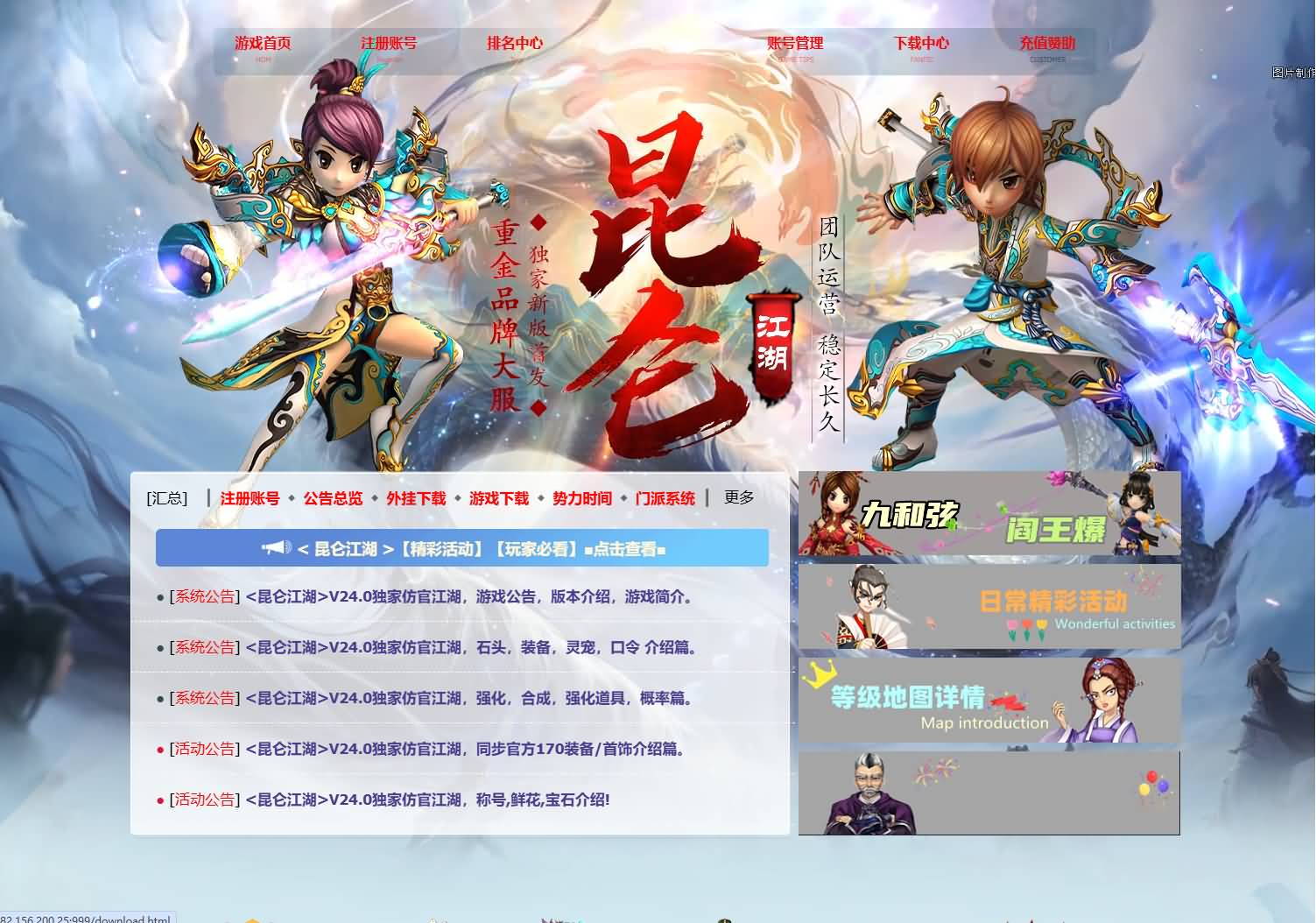游戏源码,手游源码,端游源码,页游源码,传奇手游源码下载,战神引擎,三端引擎,搭建教程工具,各类手游服务端,网页游戏源码下载 » 【热血江湖】【昆仑江湖V24】windows服务器+客户端+登陆器+视频搭建教程