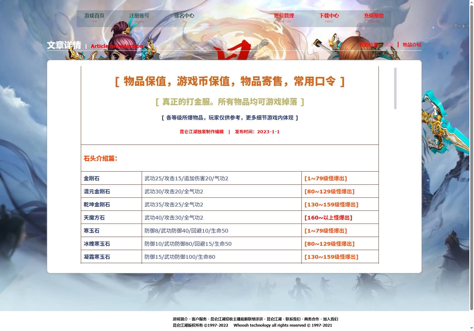 <昆仑江湖>独家承诺:7.本服物品保值,游戏币保值,真正的打金服。物品均可游戏掉落,活动兑换!