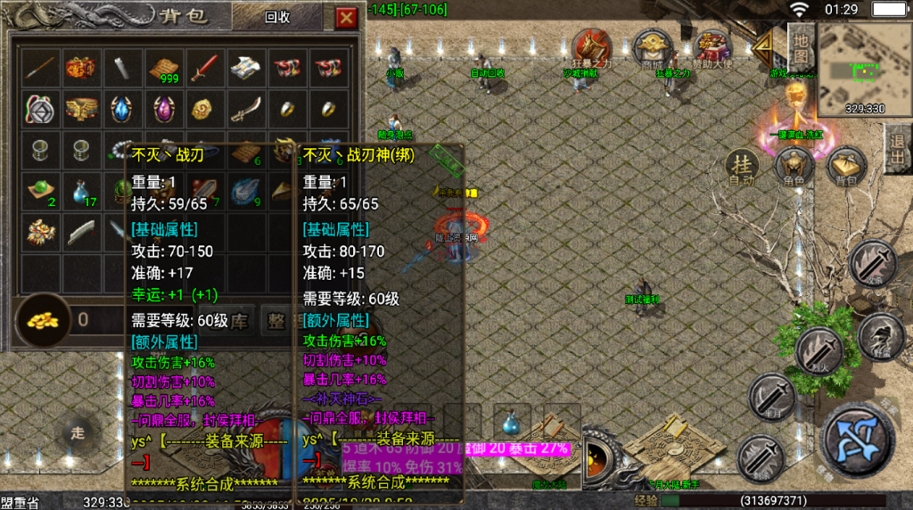 这个版本 也用了 我自己修改的 白猪3.1 + 弧形技能 + 极品显示 + 切割显示 + 道法站撸+ 全屏拾取 +物品来源 +动态logo + 安卓苹果+ 双端 苹果没有测试 自行测试 安卓没毛病