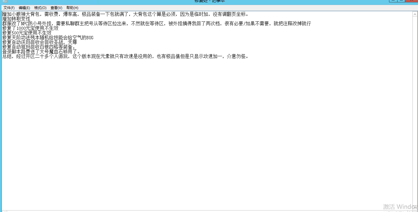 总结,经过开区二十多个人游玩,这个版本现在元素就只有攻速是没用的,也有极品值但是只显示攻速加一,介意勿怪。