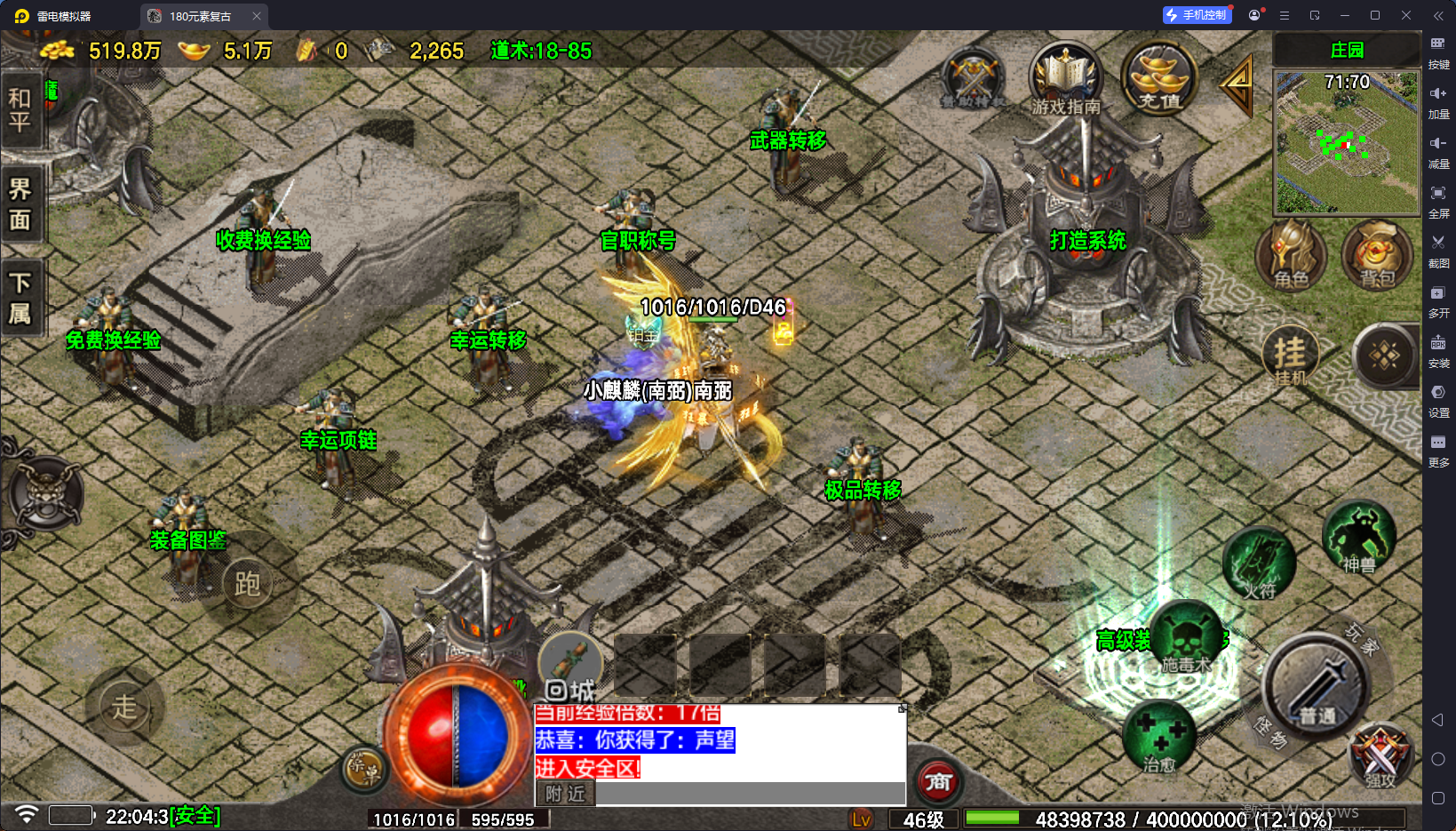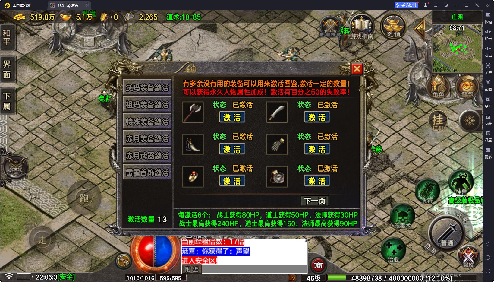 登录脚本路费送了大号魔血石够用了。