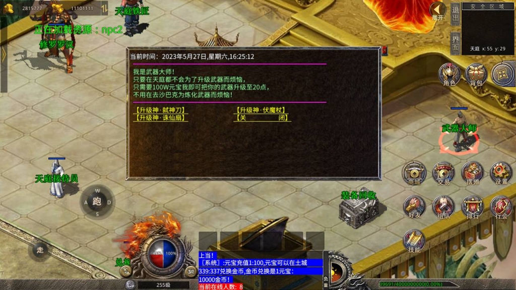 【武器升级】:本服武器可以升20点,成功几率60%左右